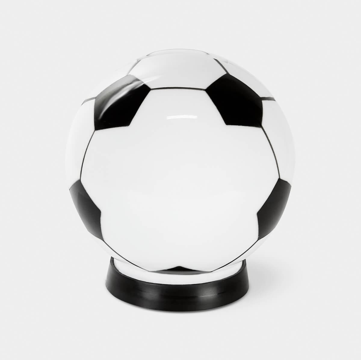 Alcancía con base en forma de balón de fútbol.