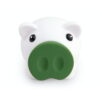 Alcancía en forma de cerdito. La naríz funciona como tapón para vaciar la alcancía. Combinación de colores con blanco.