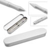 Bolígrafo con Linterna y láser, sistema de apertura Twist, incluye estuche metálico Individual y 3 pilas de repuesto. Útil como herramienta práctica para presentaciones, enseñanza, reuniones, discursos y capacitaciones. Puntero para pantallas Resistivas que normalmente son de uso profesional y de precisión. Como dispositivos bancarios por ejemplo.
