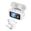 Mejor experiencia y más control desde un mismo lugar.Audífonos bluetooth TWS. Estuche de carga con pantalla táctil multifunción. 14 modos de selección que incluyen disparador para selfies, cronómetro, localizador de auriculares, luz, ecualizador, volumen y cambio de canciones. Encendido automático. 2 micrófonos. Canal doble de sonido. Incluye manual y cable de carga USB-C de 20 cm. color blanco.Medidas: 6 x 4,5 x 2,5cm. (estuche)
