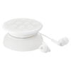 Audífonos enrollables, base con ventosa para fácil sujeción. Función soporte para smartphone.