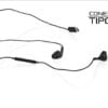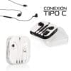 Audífonos alámbricos con control de volumen y micrófono para utilizar como manos libres, auriculares tipo botón. Conexión Tipo C.