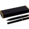 Set de escritura elaborado en aluminio reciclado, compuesto por bolígrafo con mecanismo giratorio (twist) y bolígrafo roller con tapa. Presentación en estuche rígido con detalles metálicos. Diseño elegante, funcional y de líneas clásicas.