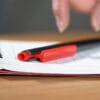 Bolígrafo de plástico con acción rápida y diseño moderno. Fabricado en RABS con acabado mate, cuenta con clip y parte superior en color liso. Incorpora un recambio fino de plástico para una escritura ágil y precisa. (Bolígrafo/Esfero)