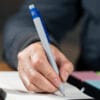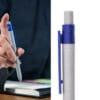 Bolígrafo de plástico con pulsador, diseño uniforme y resistente. Cuerpo, clip rectangular y botón elaborados en material de carcasa gris sólido. Incorpora recambio plástico tipo cruz para una escritura fluida y confiable. (Bolígrafo/Esfero)