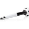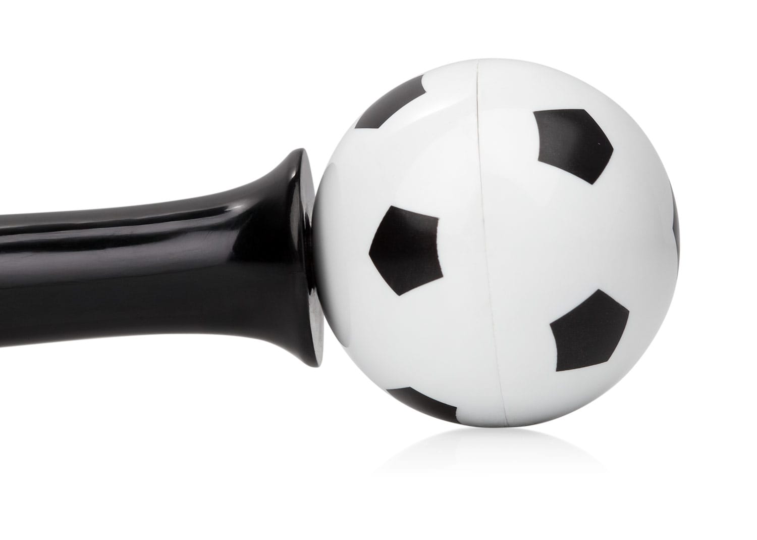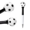 Bolígrafo de acción giratoria con barril de color sólido y punta cromada, ideal para los amantes del fútbol. Su diseño incluye una esfera decorativa con impresión de balón en la parte superior, que gira suavemente para añadir un toque divertido y dinámico mientras escribes.