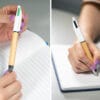 Bolígrafo con cuerpo de bambú, cuerpo superior de color sólido, punta cromada, incluye 4 minas de diferentes colores. (Bolígrafo/Esfero)