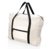 Bolso plegable con diseño funcional que incluye correas para sujetar al equipaje, facilitando su transporte en viajes. El bolsillo pequeño se convierte en estuche para guardar el bolso cuando no está en uso, y la cremallera principal cuenta con doble carrito para mayor comodidad al abrir y cerrar.