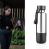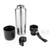 Botella Vacuum. Cuerpo de acero inoxidable de doble pared al vacío. Tapa de plástico con función de almacenamiento y cordón de 2 tamaños. Base de plástico extraíble con función de taza. Capacidad: 500 ml / 17 Oz.