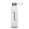 Ø 6,2 x 23 cm. Capacidad 500 ml. Vidrio resistente. Cuerpo traslúcido con tapa de acero inoxidable y tira color gris que permite transportarla. Presentación en caja de regalo.