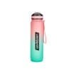 Motivación que refresca y acompaña.Botella con marcador de tiempo y medida. Colores pastel bitono en degradé con acabado frost. Tapa plástica combinada en color negro con un color de la botella. Apertura rápida, boquilla transparente rebatible y sorbete incluído. Correa del mismo color de la botella.Medidas: Ø 7 x 28cm. (con tapa)