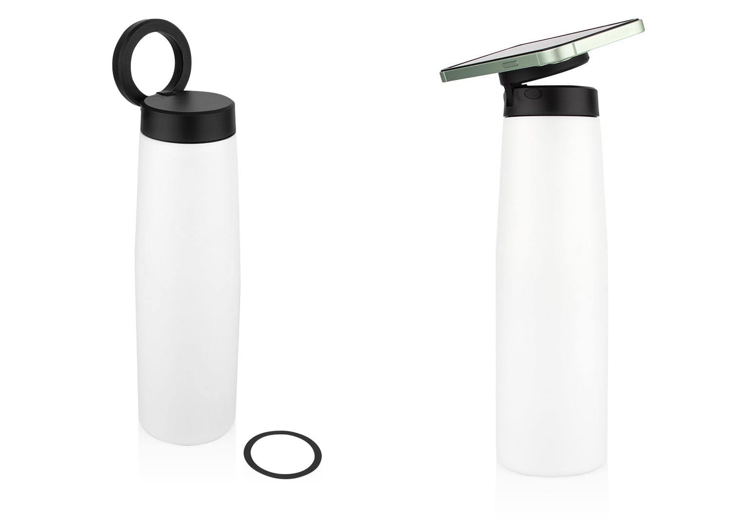 Termo con tapa de cierre giratorio, tecnología MagSafe (Ø 5,6) y doble pared de acero inoxidable. Su tapa permite colocar el celular en posición horizontal o vertical gracias al soporte magnético integrado. Capacidad: 540 ml / 18 Oz.