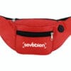 33 x 14,5 cm. Polyester 420D. Cangurera de 2 bolsillos. Salida para audífonos. Correa ajustable con herrajes plásticos. Cierres metálicos.