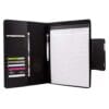 Incluye block de raya tamaño A4 con 20 hojas, elástico para bolígrafo, broche magnético, compartimento para documentos y tarjetas. No incluye bolígrafo.