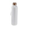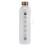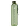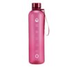 Tapa metálica con cierre de rosca. Aro de plástico con asa de tela. Cuerpo con terminado en color frosty. Incluye marcador de tiempo para motivar tus hábitos de hidratación. Incluye caja individual.