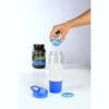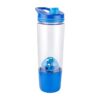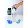 Tapa de rosca con boquilla y asa. Cuenta con compartimento especial en la parte inferior. Incluye separador, agitador y caja individual.