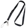 Sin botón de emergencia. Incluye: mosquetón removible, gancho para carnet y mosquetón metálico. De 90 X 1,5 cms.