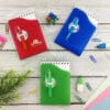 Cuaderno de 80 hojas con pasta dura. Incluye bolígrafo retráctil de mina azul. De 13 X 9,2 cms.