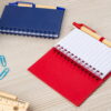 Libreta ecológica con argollado doble «O». Incluye bolígrafo ecológico. 70 Hojas rayadas. Tamaño aproximado: A7.