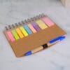 Elaborado con cartón reciclado. 80 hojas. Incluye juego de tacos, banderitas adhesivas y bolígrafo. De 17,7 x 14,8 cm