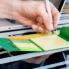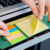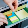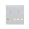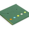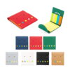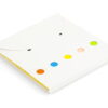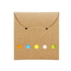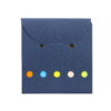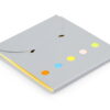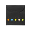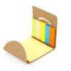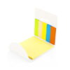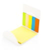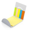 Set de memos con hojas adhesivas, 5 tacos de banderas adhesivas en papel de colores de 25 hojas c/u. y cubierta de cartón con troqueles circulares.
