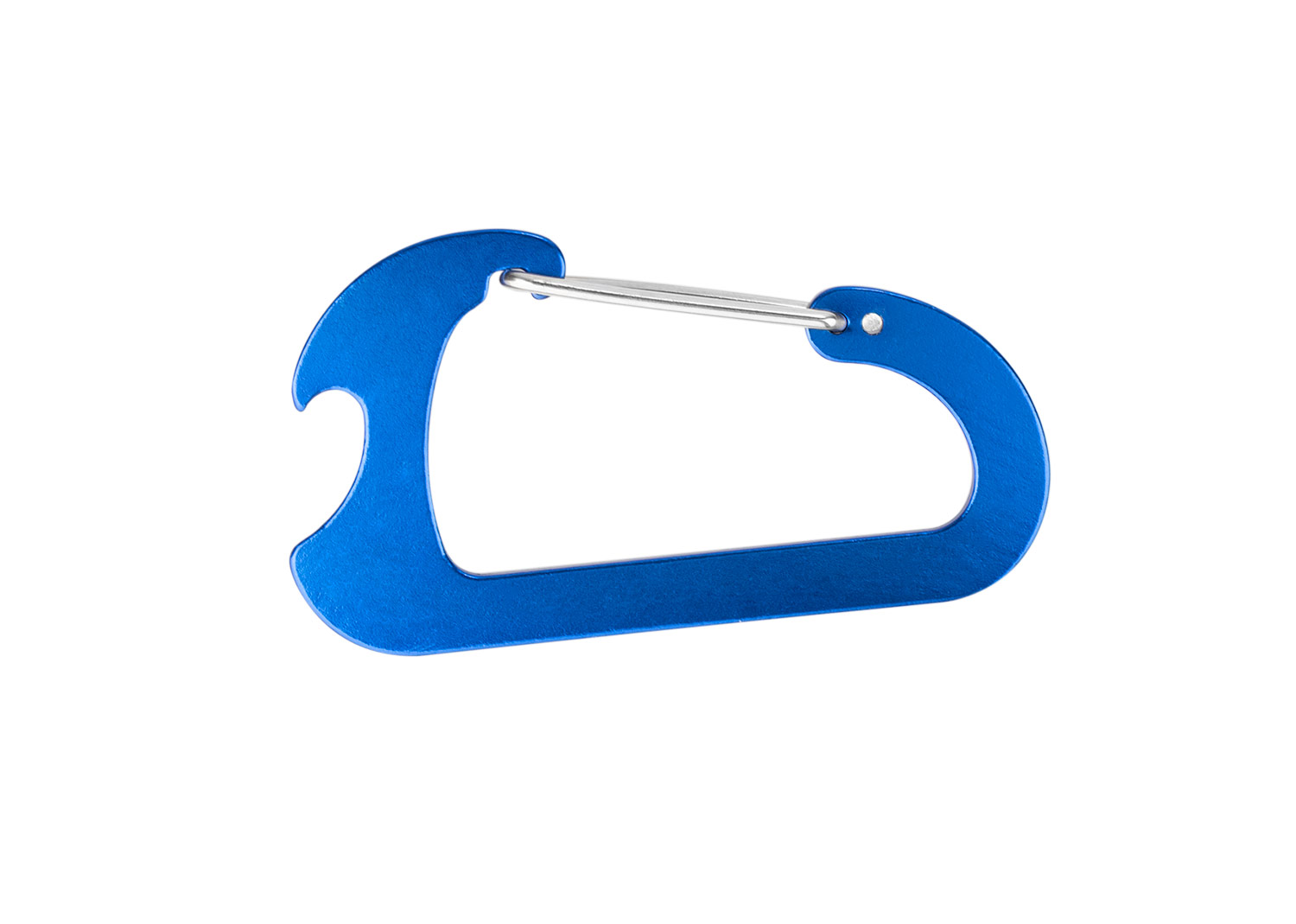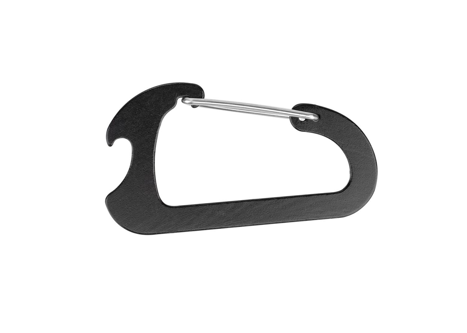 Gancho carabinero metálico multipropósito con abrebotellas integrado. Ligero, resistente y práctico para llevar en morrales, llaveros o actividades al aire libre. Ideal como accesorio funcional para el día a día.
