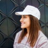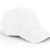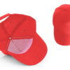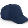 Gorra de 5 paneles con frente fusionado, visera indeformable 4 costuras, botón forrado, 4 ojetes bordados, tafilete textil y cierre velcro.