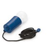 Lámpara de LED en forma de bombilla, con interruptor de encendido/apagado en el cordón, que también sirve para colgar. Requiere de 3 pilas AAA para su funcionamiento. No incluidas. Extensión del cordón: 95 cm.
