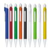Bolígrafo plástico sistema retráctil. Clip y punta plateada.