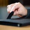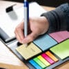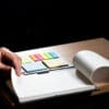 Funda de piel sintética con cierre magnético. Tamaño A5, 70 g, 80 hojas, con pegatinas de colores en el interior.