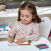 Libreta con 40 hojas, 12 hojas con dibujos de animales y 28 hojas blancas. Incluye compartimento con 11 crayones de colores.