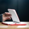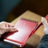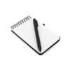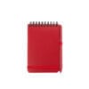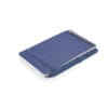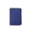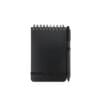 Mini libreta argollada hoja A6. Cubierta de libreta y bolígrafo hechos con plástico recuperado del océano. Banda elástica para cierre. Hojas rayadas.