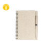 Libreta argollada ‘doble O’ con cubierta elaborada en paja de trigo, 80 hojas rayadas. Tamaño aproximado de la hoja: A6. Incluye bolígrafo elaborado en paja de trigo.