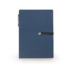 Libreta ecológica con 70 hojas de papel rayado y banda elástica en el medio para cierre. Incluye bolígrafo, 25 memos amarillos grandes, 25 memos amarillos pequeños y 4 juegos de banderitas adhesivas en papel de colores por 25 unidades cada uno. Tamaño aproximado de las hojas A7.