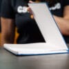 Libreta A4 para planificación. Incluye 80 hojas rayadas de papel blanco de 70 g/m². Cubierta resistente con cinta elástica a juego para mantenerla cerrada. Ideal para notas, agendas o esquemas de trabajo.