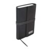 Libreta con 120 hojas de raya. Incluye separador de hojas, elástico para cerrar y placa para grabado.