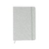 Libreta con cubierta dura forrada en algodón. Con banda elástica de cierre. Contiene 80 hojas rayadas. El tamaño aproximado de la hoja: A5.