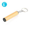 Mini linterna LED con revestimiento de bambú, pequeña y fácil de usar. Incluye aro para llaves.