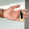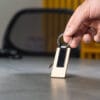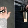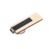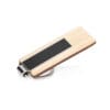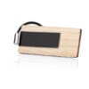Llavero rectangular de bambú, con metal para marcar. Diseño moderno que combina materiales naturales y metálicos. Acabado liso y elegante, con anillo metálico resistente.