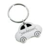 4,3 x 0,4 x 3 cm. Metal. Llavero plano en forma de auto. Presentación en caja de regalo.