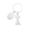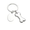Llavero metálico con diseño en forma de hueso y placa redonda para grabado. PersonalíÂzalo con el nombre de tu mascota, una fecha especial o cualquier texto que desees. Además de mantener tus llaves organizadas, también te permite recordar a tus mascotas.