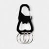 Llavero metálico multifunción con gancho, destapador y tres aros para llaves. Organiza y transporta tus llaves con un accesorio práctico y de uso diario.
