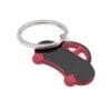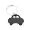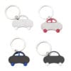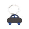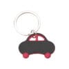 Llavero metálico con forma de automóvil. Diseño moderno en acabado bicolor con detalles plásticos en contraste. Incluye anillo metálico resistente para mayor durabilidad.