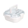 17,8 x 17,8 x 7,6 cm. Capacidad 1 litro. Plástico PP. Contenedor de alimentos. Tapa translúcida con cuatro clips de cierre hermético y asa para trasladar cómodamente. Clips y asa del mismo color que el recipiente.