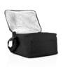 Lonchera térmica de algodón con interior de aluminio. Bolsillo frontal y asas de tela resistentes ajustables.
