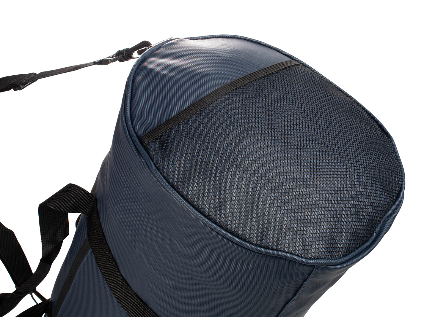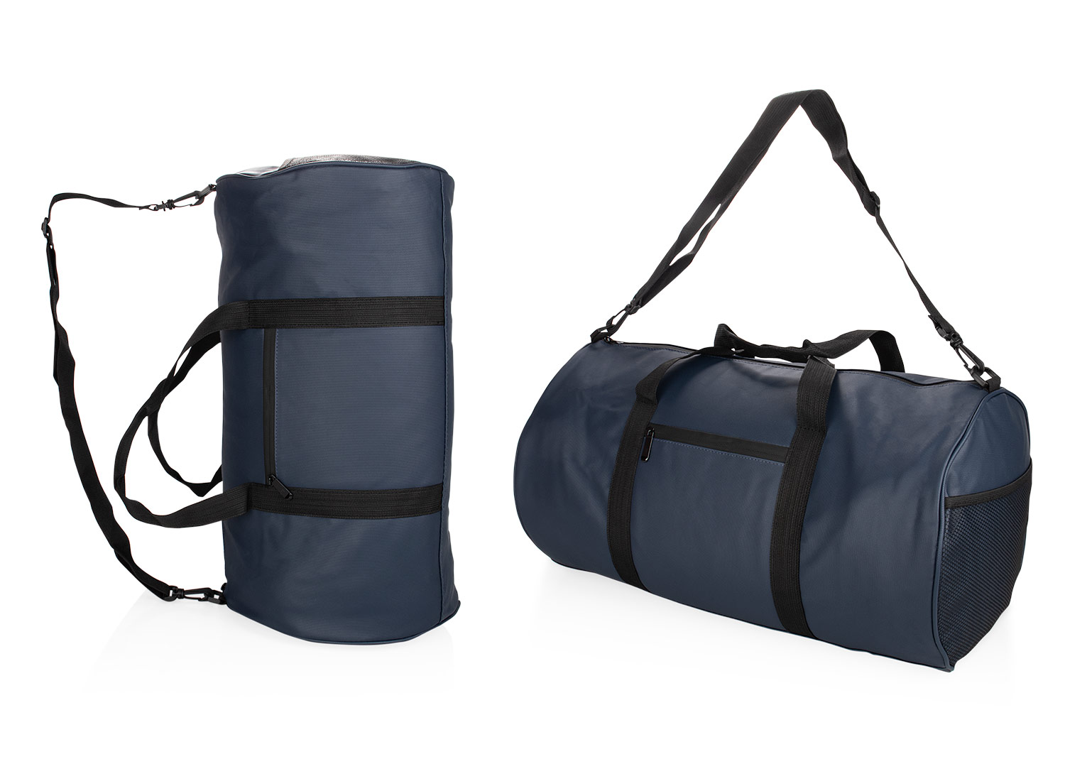 Maleta de viaje cilíndrica con diseño funcional y versátil. Cuenta con bolsillo frontal, bolsillo lateral izquierdo con cremallera y compartimiento de malla en el lado derecho. Incluye correa ajustable y removible para facilitar el transporte. En su interior, dispone de compartimientos que permiten una mejor organización de los objetos personales. Ideal para actividades deportivas, viajes cortos o uso diario.