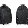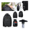 Morral para viaje con trolley. Cargaderas acolchadas ajustables y manija de mano. Bolsillo posterior con cierre de velcro. Dos bolsillos frontales con cierre de cremallera, uno de ellos con compartimentos, 4 bolsillos especiales para documentos y dos porta bolígrafos. Compartimiento principal con bolsillo acolchado especial para portátil hasta de 19” con cierre de velcro.
