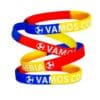 Siliconadas con la bandera de Colombia, en bajo relieve e impresión a 1 tinta. De: de 1,2 x 6,5 cm de diámetro.