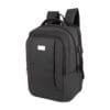 Mochila con salida USB (se requiere conectar a batería portátil) para cargar smartphone. Compartimento interno para laptop de 14″. Compartimento principal con dos bolsas de red. Bolsa interna con cierre. Bolsa frontal con organizador de documentos. 2 Bolsas laterales con elástico. Bolsa trasera con cierre oculto. Aditamento especial para poner en trolley. Respaldo y tirantes acojinados. Incluye placa metálica para grabado.