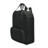 Bolsa principal y bolsa frontal con cierre. Cuenta con tirantes ajustables y asa de agarre superior con broche metálico. Con capacidad para laptop de hasta 14″.